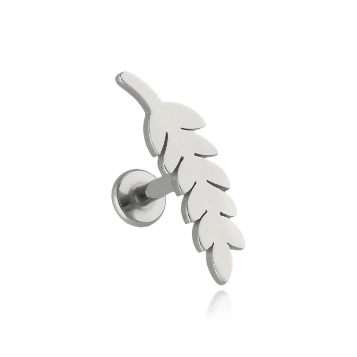 Silver leaf labret earring - left - LGW-039