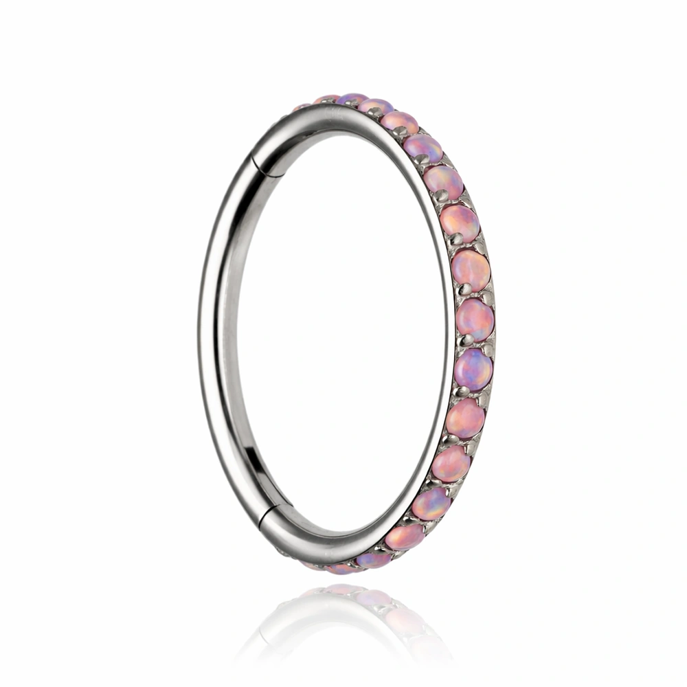 Titanium gold horseshoe earring with light purple opal - TKP-004