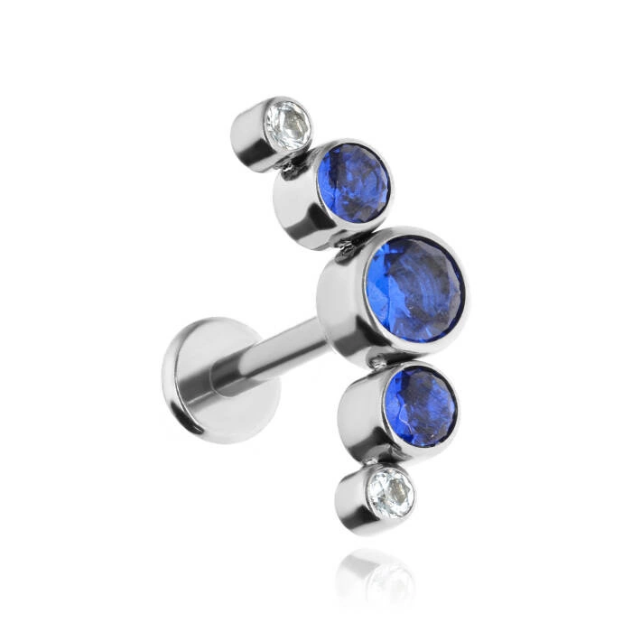 Piercing ring clicker decorative with white zircons - CoCr NF - silver - K-075