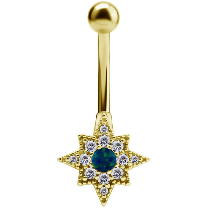 Belly button ring with green crystals - KP-003