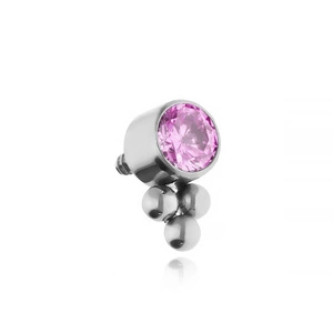 Titanium attachment heart with pink zirconia - sterling silver - TNA-123