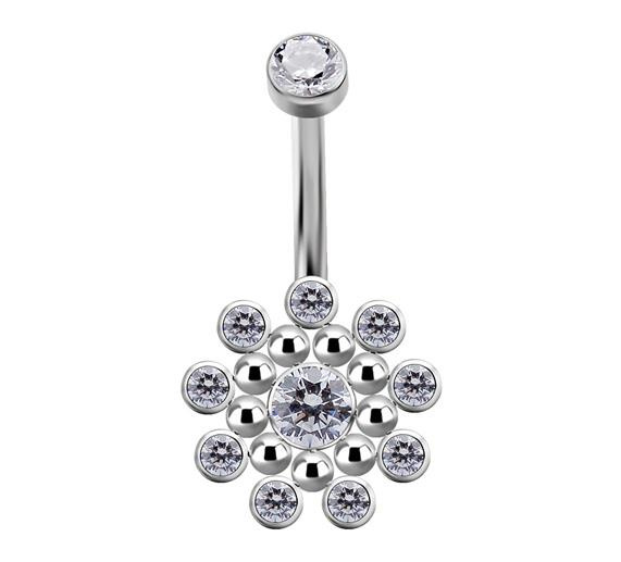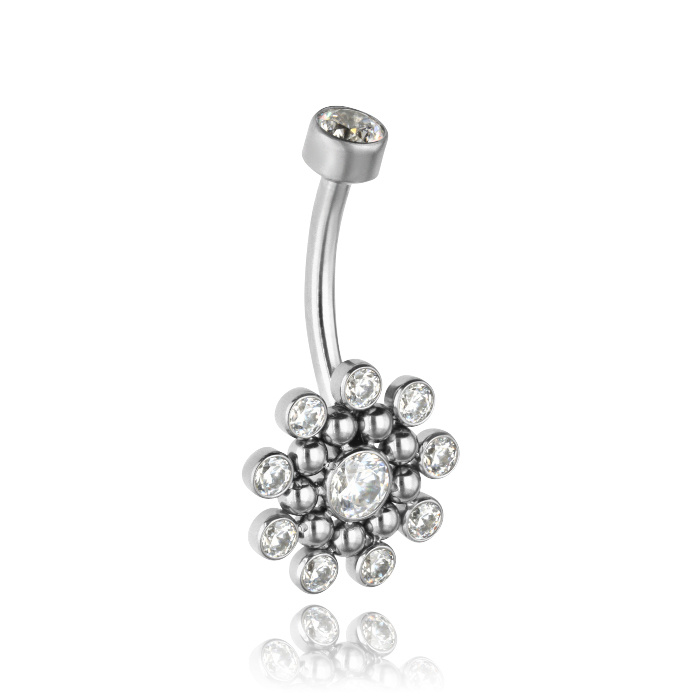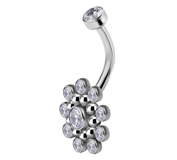 Titanium belly button ring with white zircons PREMIUM - TPP-007 | CrazyNeedles.pl