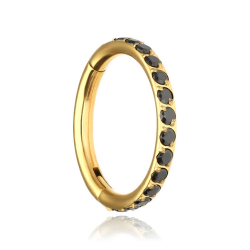 Titanium CLICKER ring with white zircons - silver - TK-023