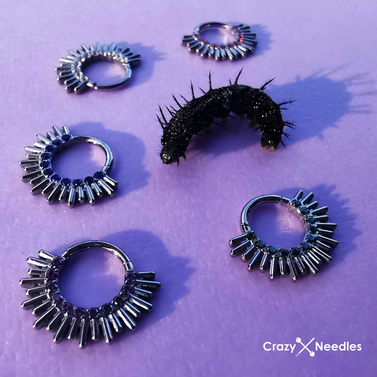 Titanium piercing clicker with purple zircons - silver - TK-055