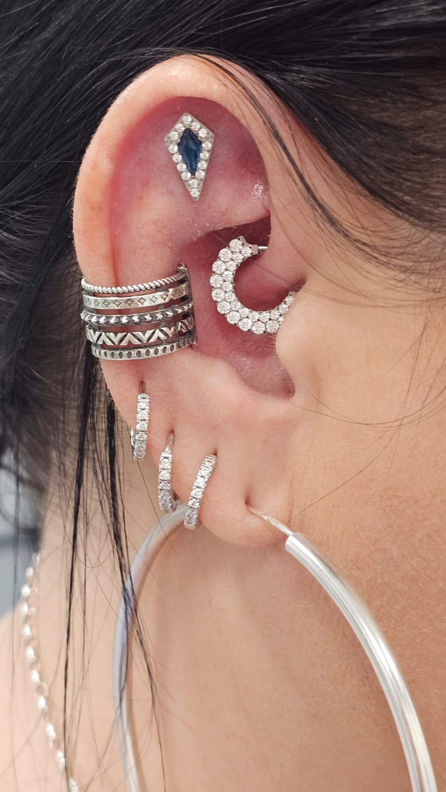 Niestety – nie każde ucho będzie idealnym kandydatem do flat piercingu. Liczy się m.in. grubość i kształt chrząstki, symetria uszu (jeśli planujesz przekłuć oba), miejsce pod ewentualne inne przekłucia oraz napięcie skóry i naturalne zagięcia ucha.