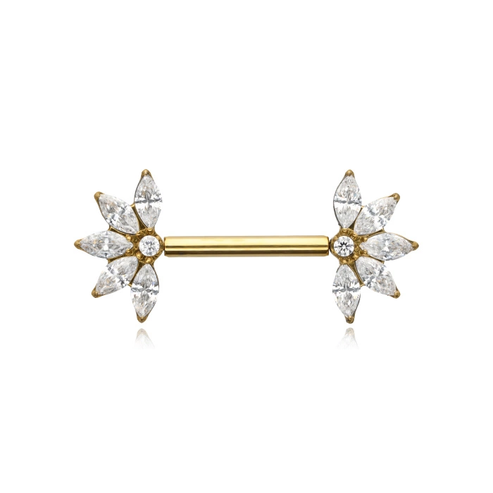 Tytanowy kolczyk do sutka z białymi cyrkoniami - złoty - TI-012