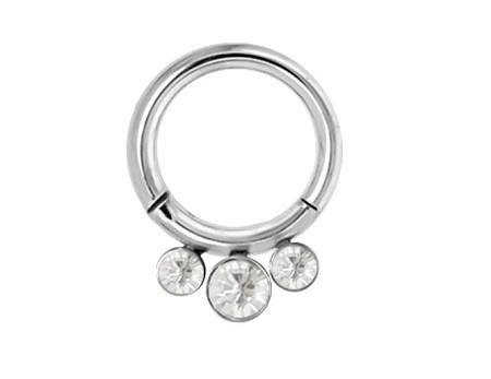 Tytanowy kolczyk kółko clicker z cyrkoniami - srebrny - TK-012