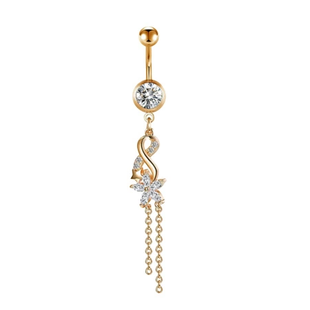 Kolczyk do pępka złoty z białymi cyrkoniami - KP-049
