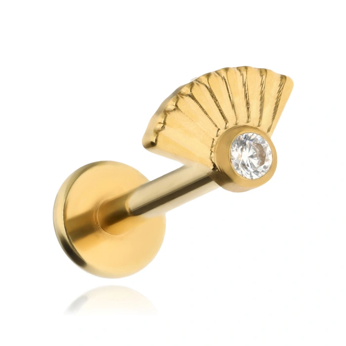 Tytanowy kolczyk labret z białą cyrkonią - złoty