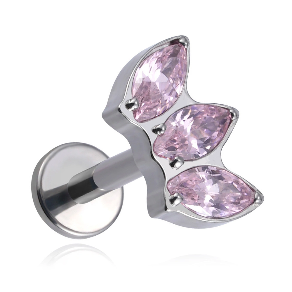 Tytanowy kolczyk labret z różowymi cyrkoniami - srebrny