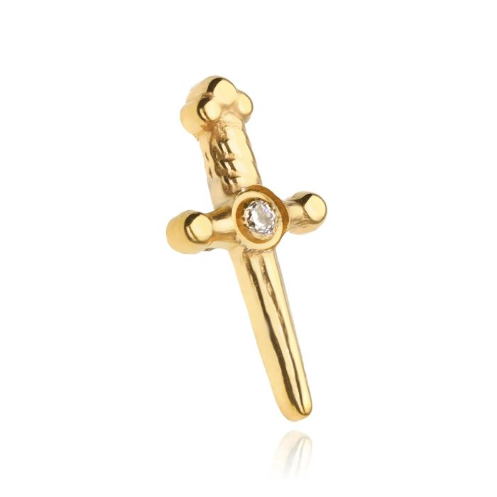 Tytanowy kolczyk labret sztylet z cyrkonią - złoty