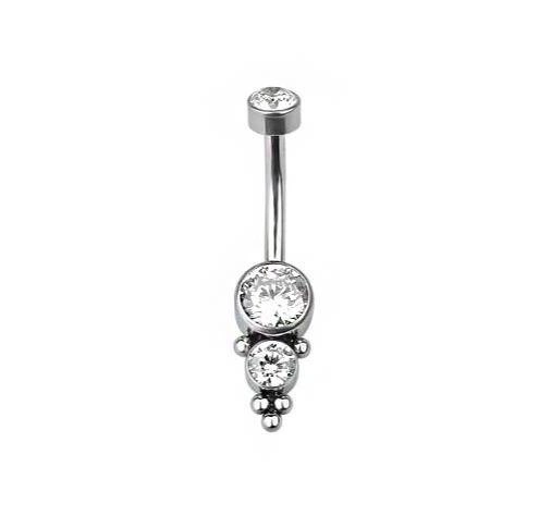 Tytanowy kolczyk do pępka - Premium Zirconia biała - TPP-023