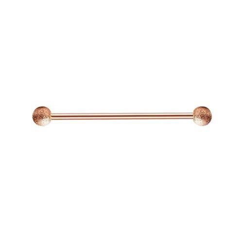 Ten kolczyk ze stali chirurgicznej wykonano starannie z dużą dbałością o detale. Jego cechą charakterystyczną są oszronione wykończenia w postaci małych kulek. Kolczyk industrial IND-029 cechuje stylowa barwa różowego złota. Ostatnio ten kolor jest bardzo popularny zwłaszcza wśród kobiecej biżuterii.