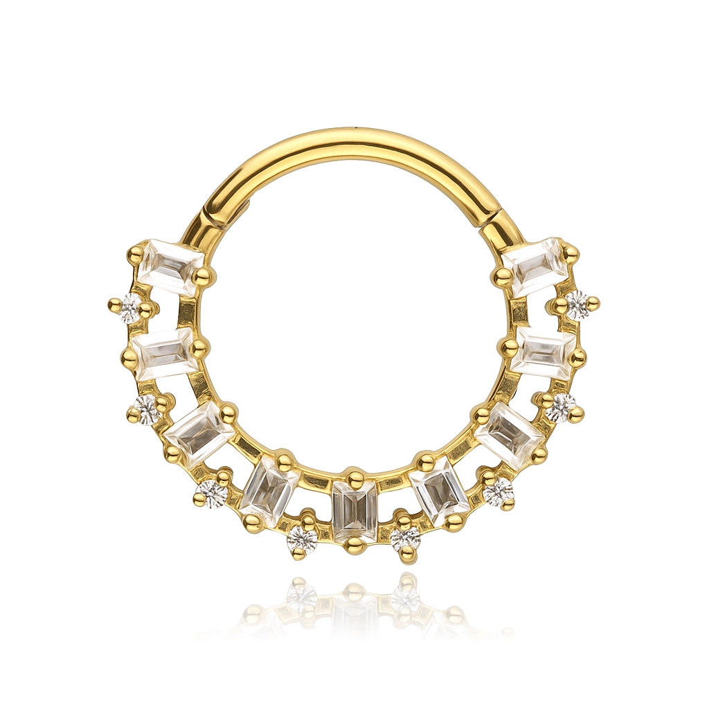 Kolczyk clicker z białymi cyrkoniami - złoty - K-080 | CrazyNeedles.pl