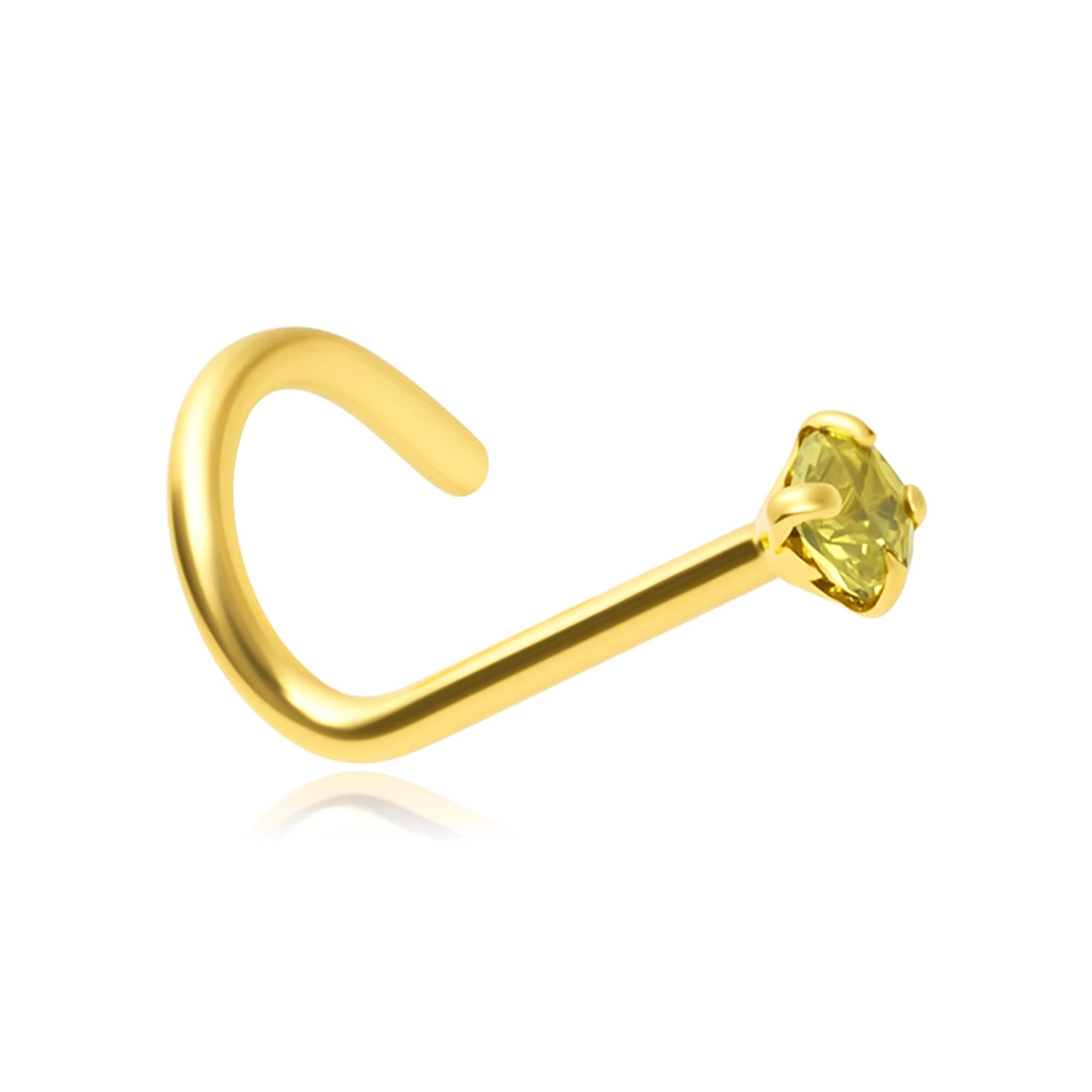 Kolczyk do nosa z zieloną cyrkonią - złoty - NS-006 | CrazyNeedles.pl