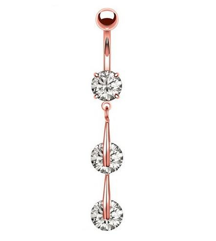 Kolczyk do pępka długi różowe złoto z białą cyrkonią - KP-030