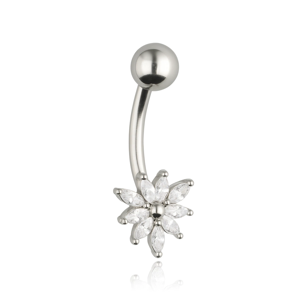 Kolczyk do pępka z białymi cyrkoniami - srebrny - KP-035 | CrazyNeedles.pl
