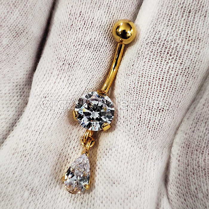 Kolczyk do pępka złoty z białą cyrkonią - KP-009