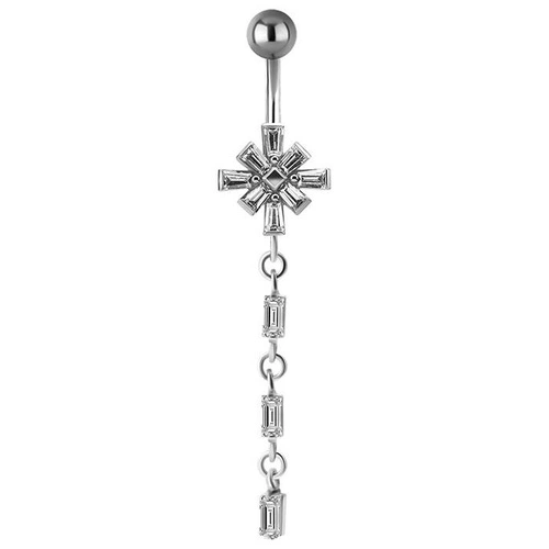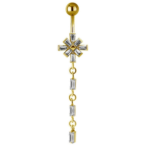 Kolczyk do pępka złoty z białymi cyrkoniami - KP-034