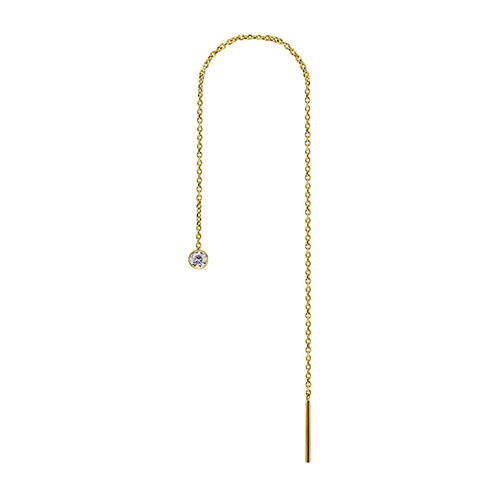 Zawieszony łańcuszek dodaje mu lekkości, a ruch przy każdym kroku tylko podkręca wrażenie – jakby twoje ucho miało własny rytm. Wykonany ze stali chirurgicznej i 24-karatowego złota PVD, sprawdzi się zarówno solo, jak i wśród całej armii kolczyków, jeśli lubisz miksować ozdoby.