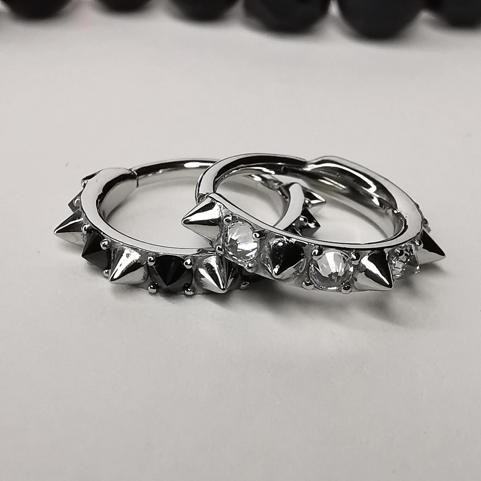 Kolczyk kółko clicker ćwieki i czarne cyrkonie - CoCr NF - srebrny - K-077