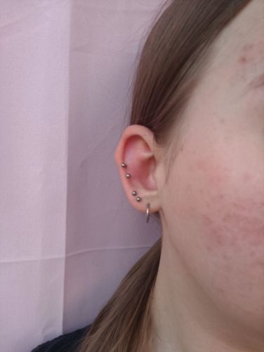 To moja pierwsza styczność z takimi clickerami i muszę nabrać wprawy... Pierwsze podejście do założenia (na całkiem świeżo wygojone przekłucie) to była masakra, żałowałam że wzięłam 1.2mm a nie węższe, ale poćwiczyłam na dawno wygojonym i jest ok. Ładne klasyczne kółeczko