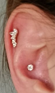 kolczyk jest piękny, na żywo robi jeszcze lepsze wrażenie; jedyne na co trzeba uważać, aby w pełni się nim zachwycać, to dobranie odpowiedniego rozmiaru, bo jak przy większości wzorów kwiatowych czy listkowych może lekko uwierać przy nacisku czy dłuższym przy helixie