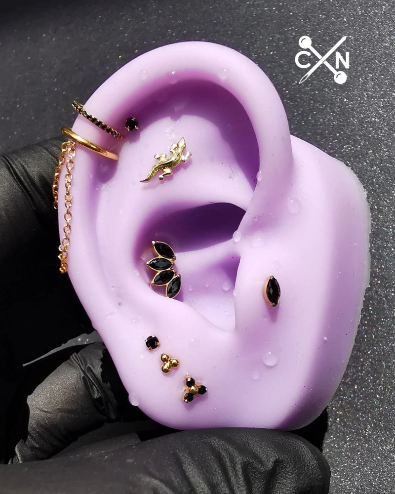 Tytanowa nakrętka złota z czarną cyrkonią - TNA-066 (2 szt.)