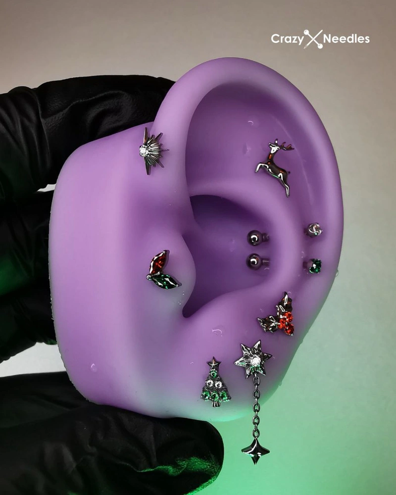 Każdy model to precyzyjny, bezpieczny do piercingu element, który łączy elegancję z lekkim, świątecznym vibe’em.