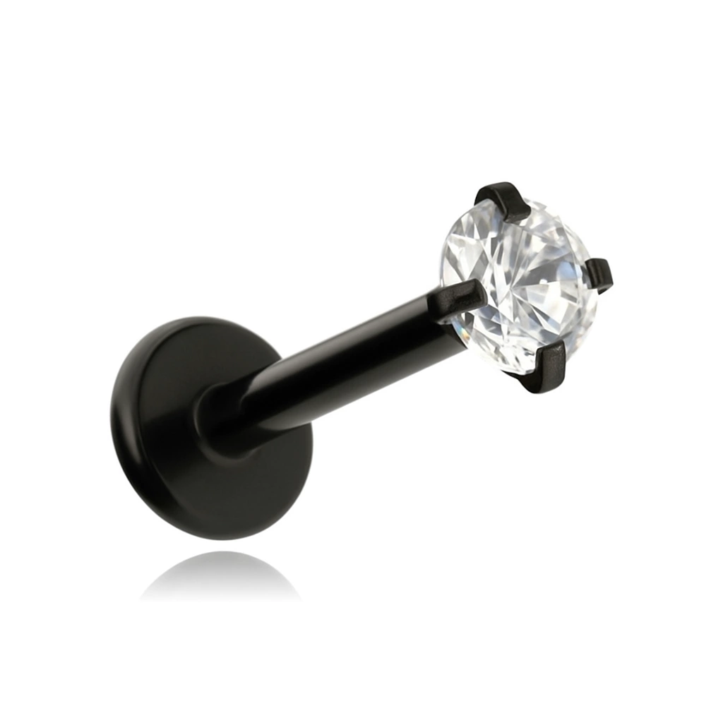 Opinie o Labret czarny z białą cyrkonią - LGW-001