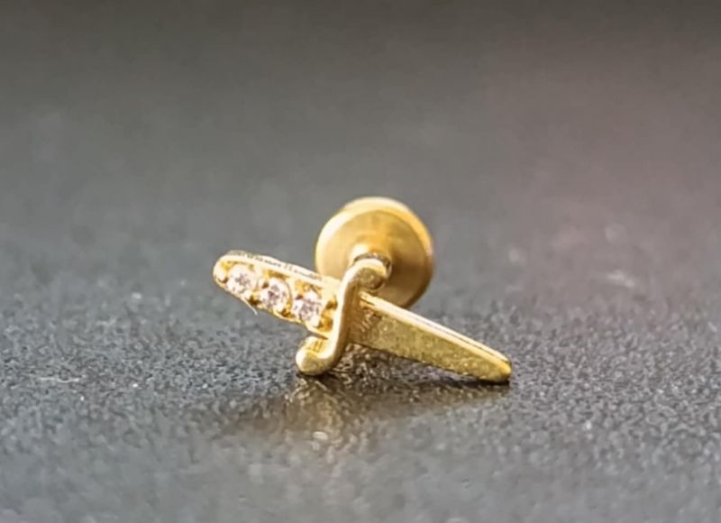 Labret sztylet z białymi cyrkoniami - srebrny - LGW-018