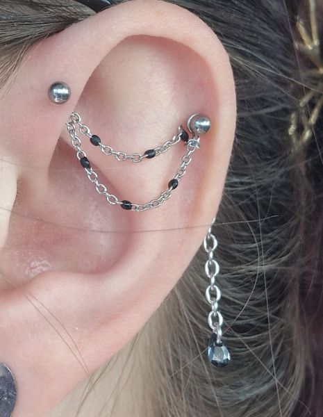 Opinie o Łańcuszek charms z czarną cyrkonią - srebrny - D-074