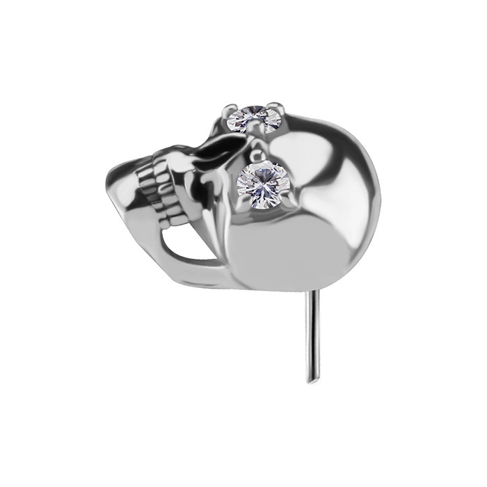 Nakrętka push in - czaszka z białymi cyrkoniami - CoCr NF - srebrny - PI-014 | CrazyNeedles.pl