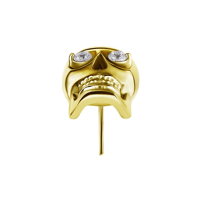 Nakrętka push in - czaszka z białymi cyrkoniami - CoCr NF - złoty - PI-005