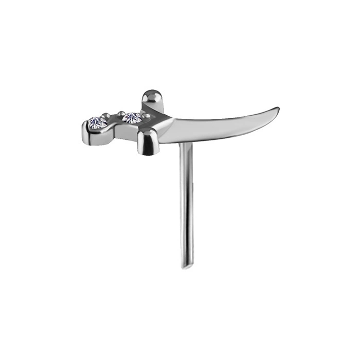 Nakrętka push in - sztylet z białymi cyrkoniami - CoCr NF - srebrny - PI-011