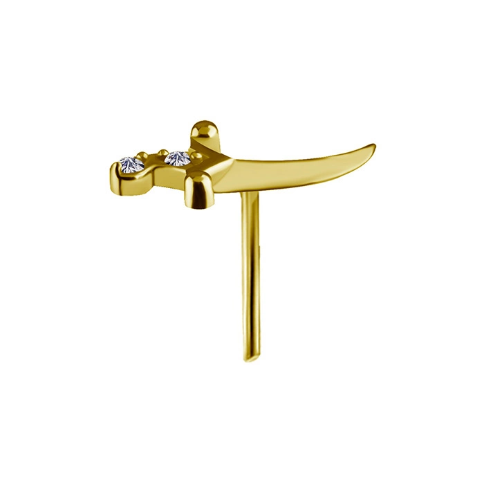 Nakrętka push in - sztylet z białymi cyrkoniami - CoCr NF - złoty - PI-011