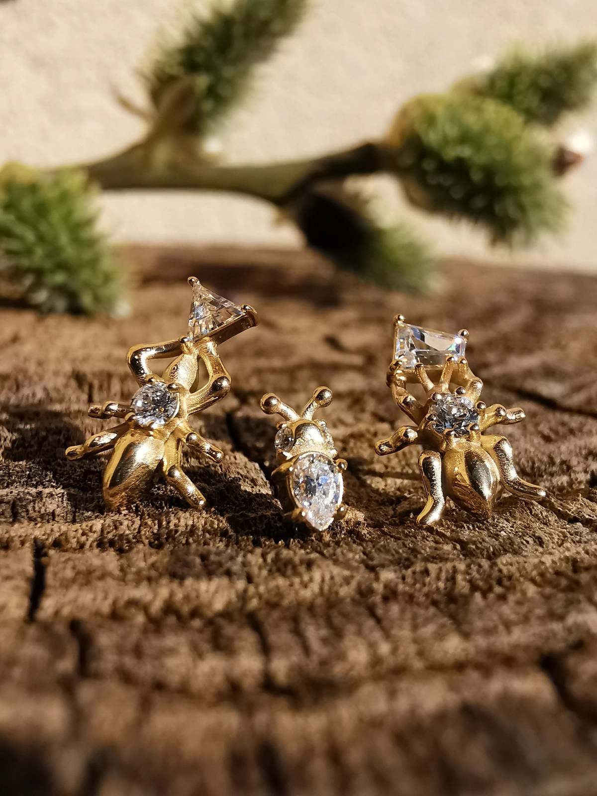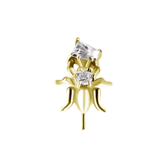 Nakrętka push in - żuk z białą cyrkonią - CoCr NF - złoty - PI-016