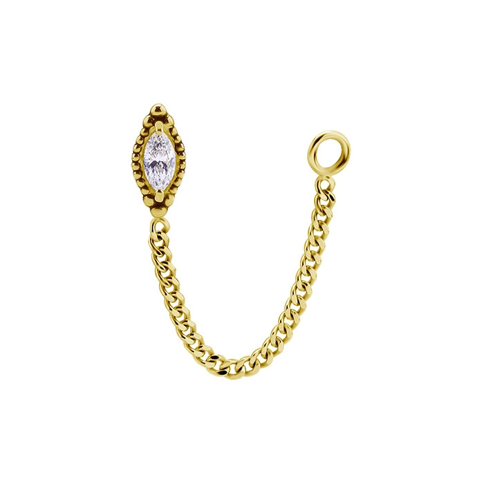 Nakrętka złoto 18K ozdobna z białą cyrkonią i łańcuszkiem - GD18K-057