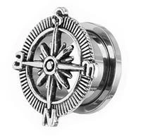 Tunel ozdobny z różą wiatrów. Kolczyk posiada odkręcaną tylną ściankę.