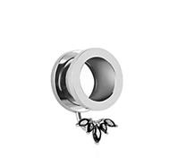 Tunel z czarnymi cyrkoniami. Kolczyk posiada odkręcaną tylną ściankę.