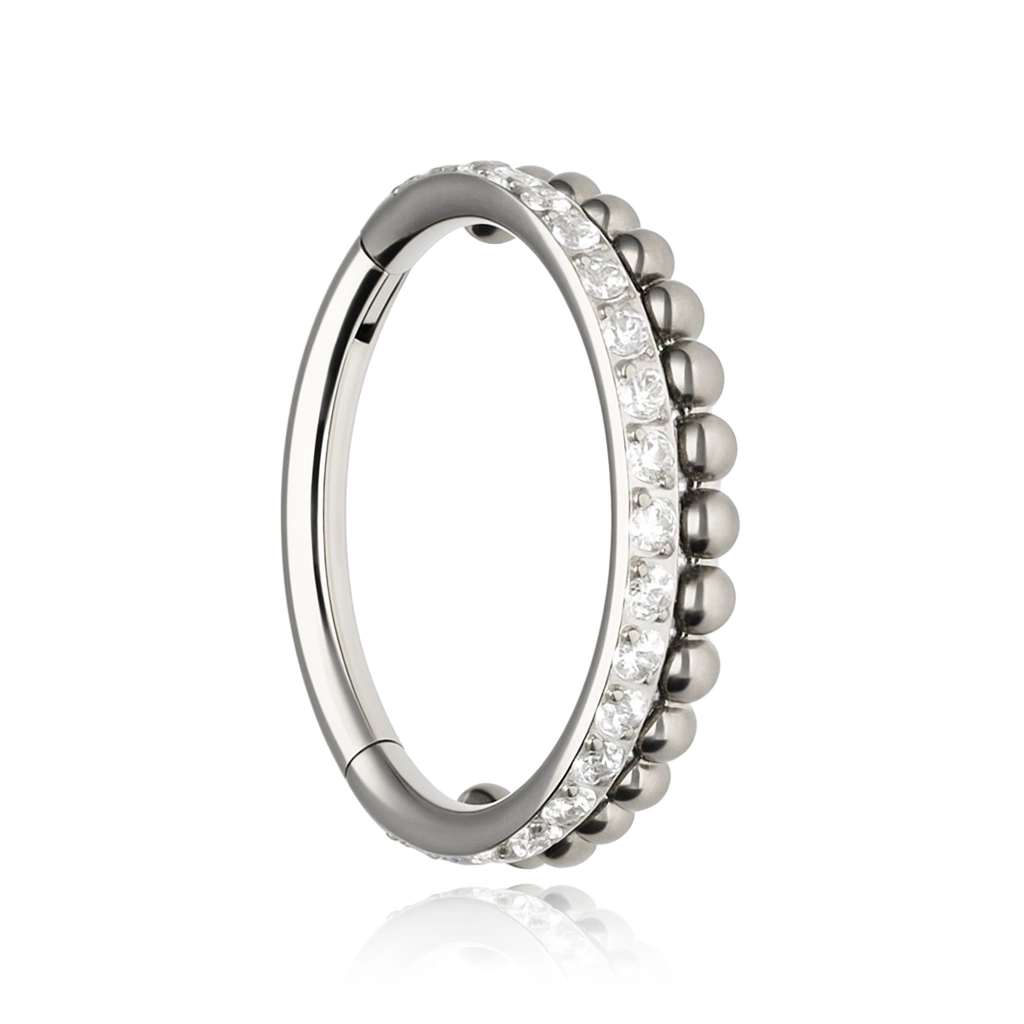 Tytanowe kółko clicker z białymi cyrkoniami i mini kuleczkami - srebrny - TK-041