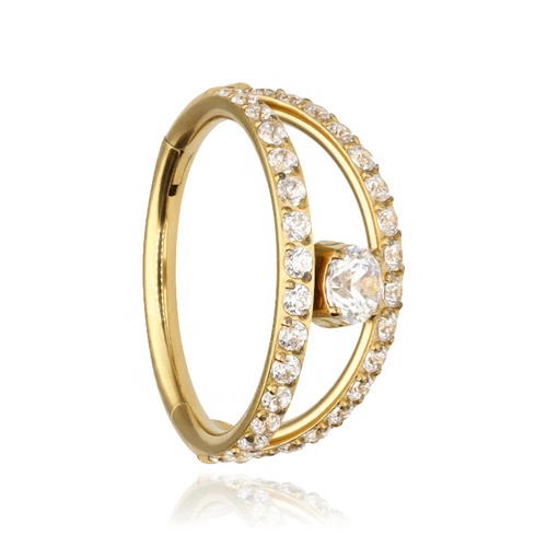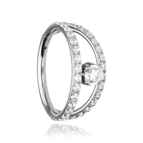 Tytanowe kółko clicker z białymi cyrkoniami - srebrne - TK-039