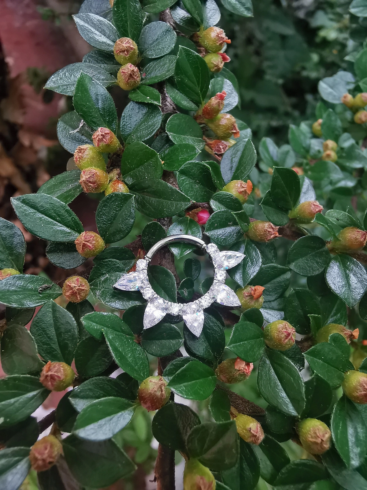 Tytanowe kółko clicker z cyrkoniami - srebrny - TK-067