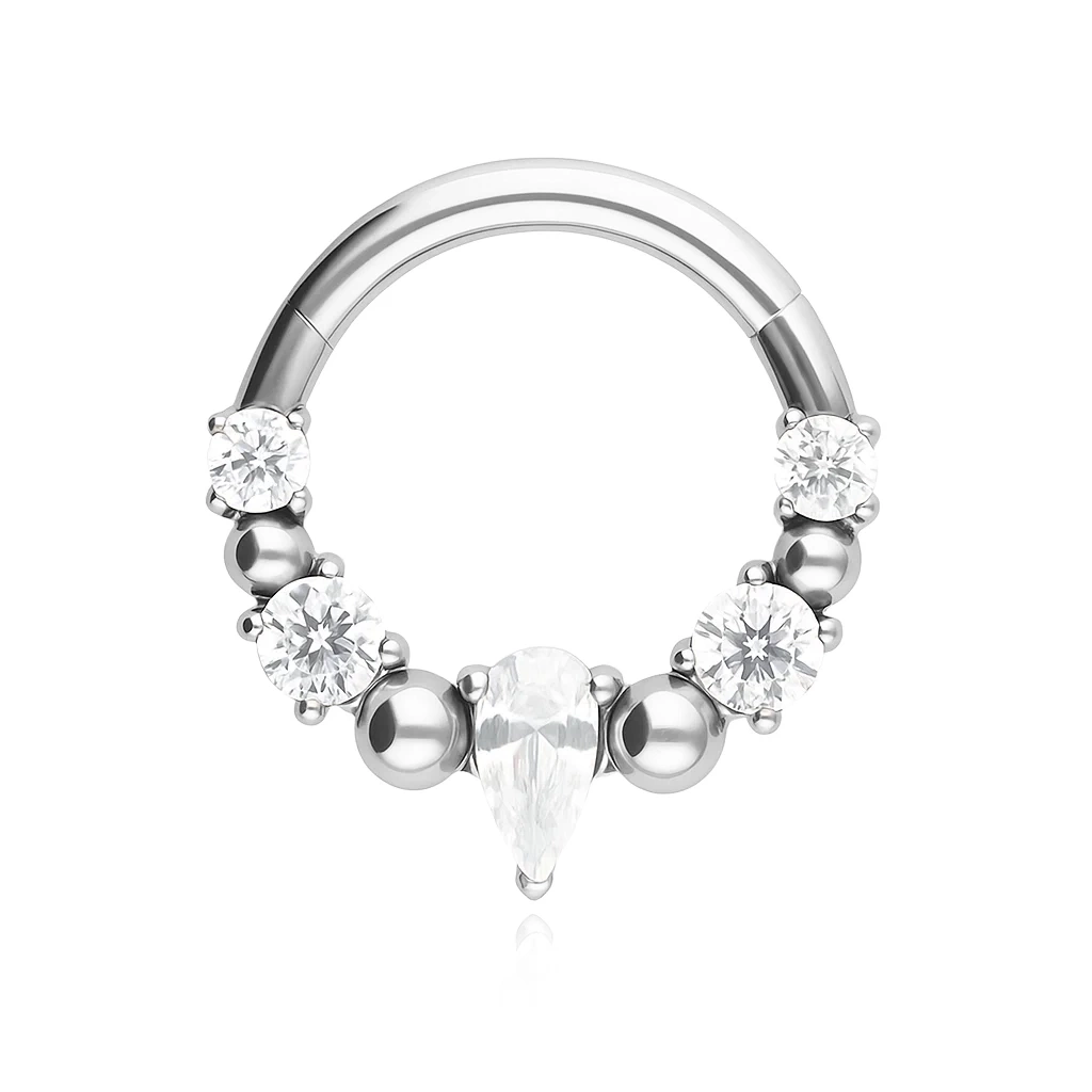 Tytanowe kółko clicker z cyrkoniami - srebrny - TK-088