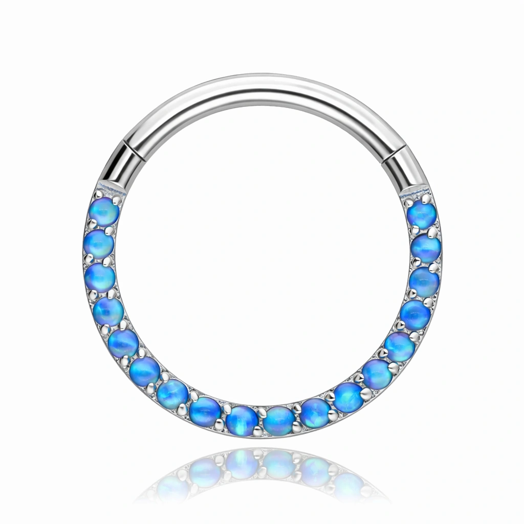 Tytanowe kółko cliker z niebieskim opalem - OP05 - TK-021