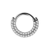 Kolczyk tytanowy ozdobny „TK-053” to clicker w kolorze srebrnym, udekorowany białymi cyrkoniami. Ich piękny blask sprawia, że jest to dodatek idealny do noszenia solo lub w zestawieniu z innymi kolczykami. Wykonany jest z wysokiej jakości tytanu ASTM F-136 (Ti-6Al-4V ELI).