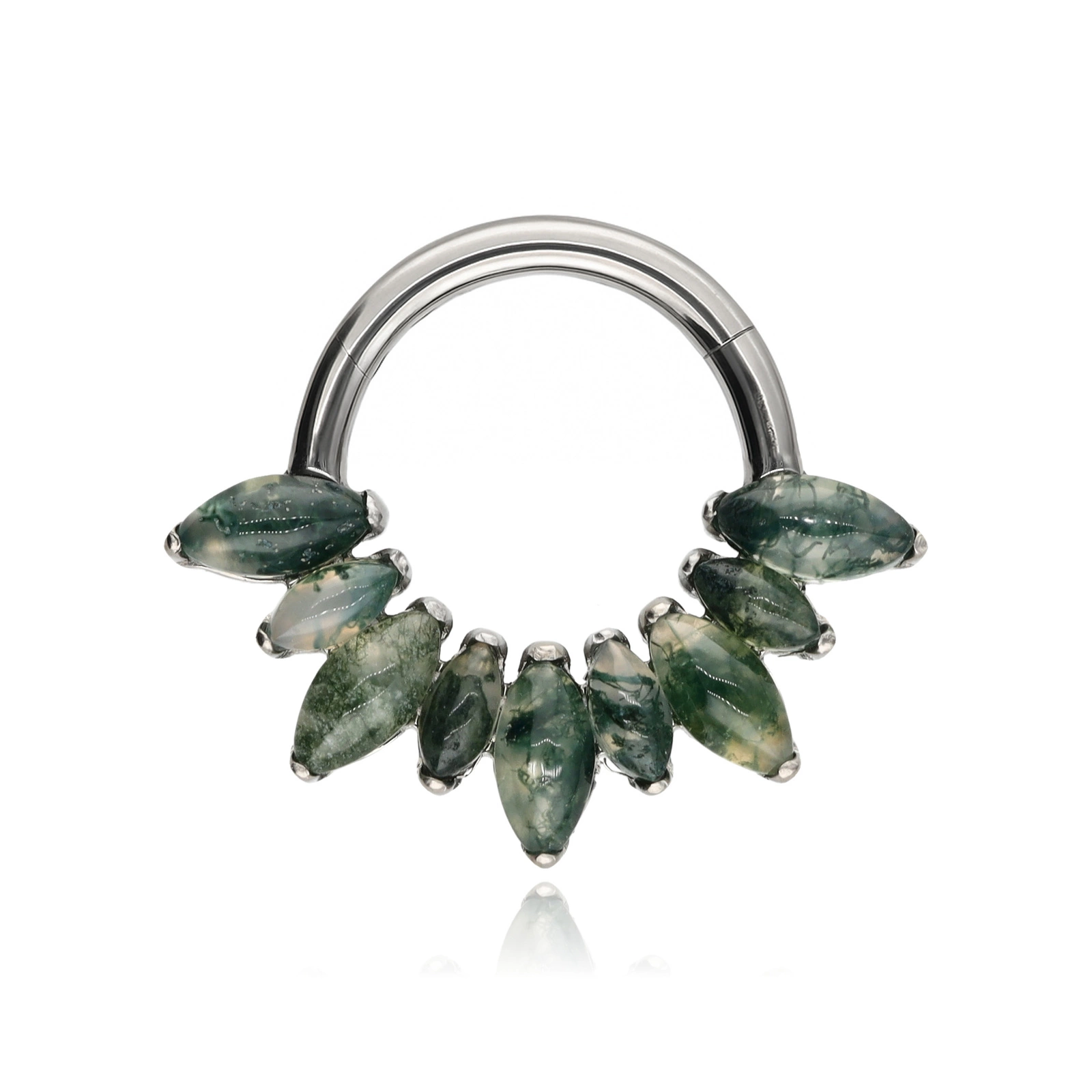 Tytanowy kolczyk clicker z agatem mszystym - srebrny - TK-101