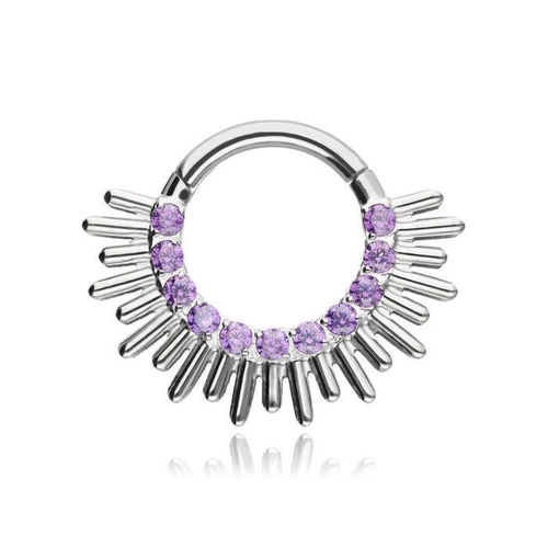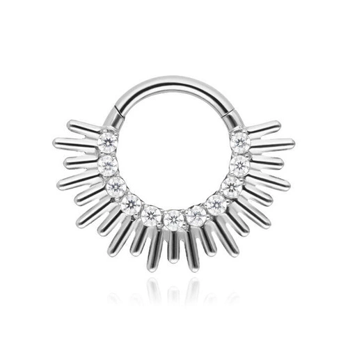 Tytanowy kolczyk clicker z białymi cyrkoniami - srebrny - TK-055 | CrazyNeedles.pl