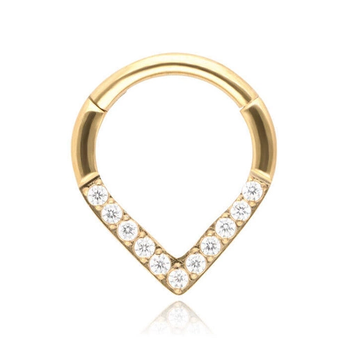Tytanowy kolczyk clicker z białymi cyrkoniami - złoty - TK-057 | CrazyNeedles.pl