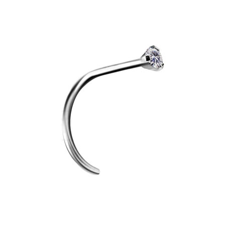 Tytanowy kolczyk do nosa z białą cyrkonią - srebrny - TN-004